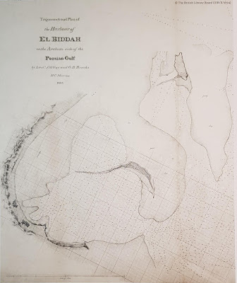 "Trigonometric map of Al Bidda (El Biddah), drawn by Lieutenant Brucks, and Guy of Britain's Royal Navy in 1823."